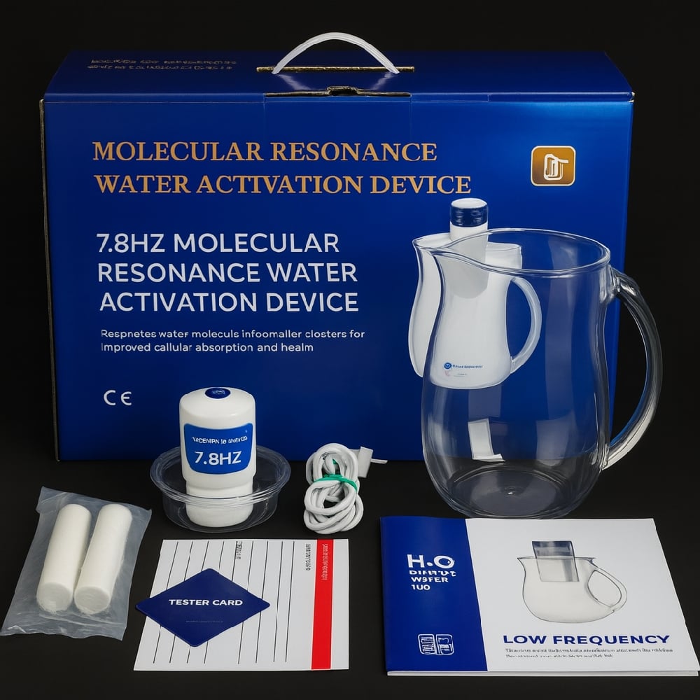 When the activation module is placed inside the jug, the device emits a stable 7.8Hz frequency. Over several minutes, the resonance travels through the water column, reducing chaotic molecular motion and encouraging a smaller, tighter cluster arrangement. This is similar to how sound waves can structure liquids without physical contact.