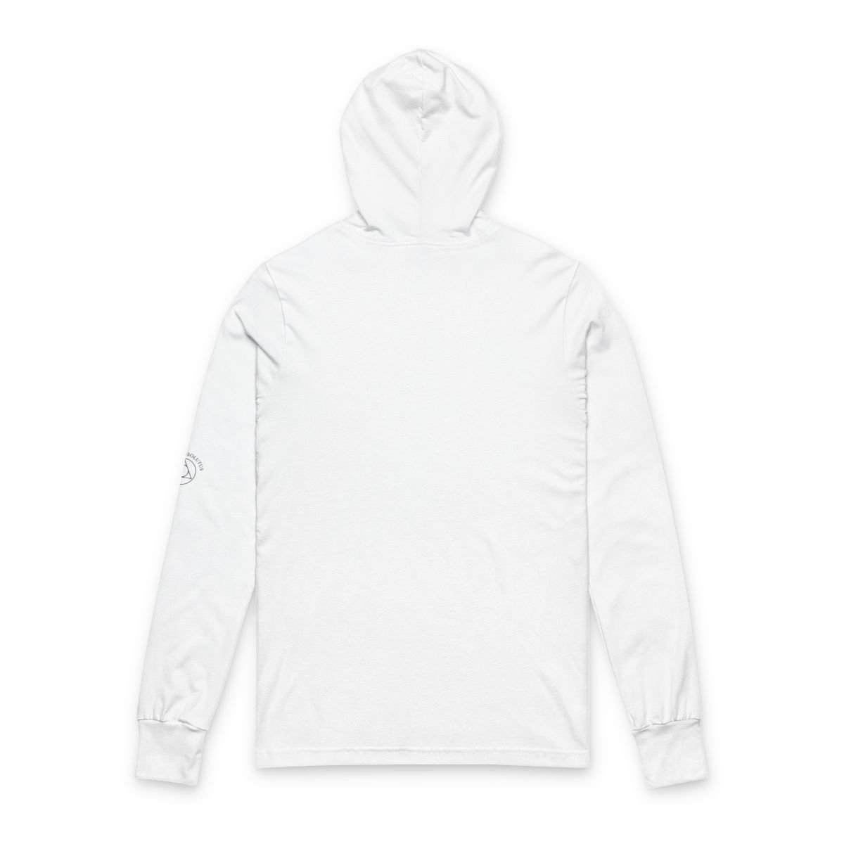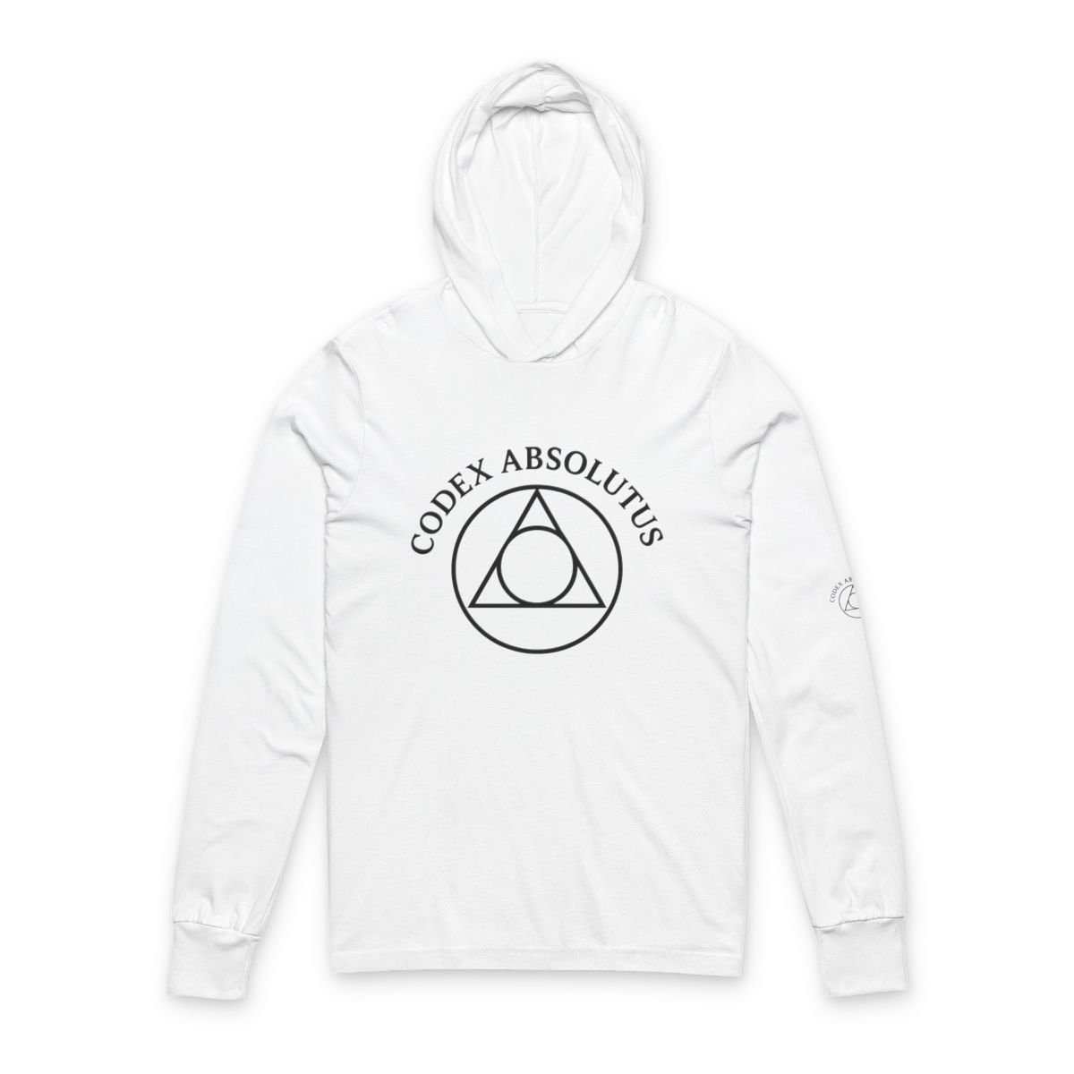 Lightweight hooded long sleeve with a quiet, scholarly edge. The slim, side-seamed silhouette drapes like a favorite study sweater while the crossover “V” neckline and fitted cuffs keep the look neat. A single-line emblem and Latin phrase on the chest—plus a subtle sleeve mark—give this piece an archival, secret-society vibe that sits well under a coat or layered over a tee. Breathable airlume cotton keeps you cool during late-night reading sessions or route-planning walks, and muted colors let the graphic speak without shouting. Wear it when you want to feel deliberate, curious, and slightly conspiratorial.