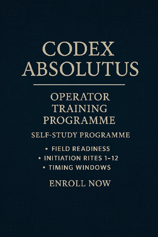 It teaches the mechanics of how energetic systems operate, how an Operator stabilises their field, and how to access the timing windows and rites that activate higher levels of coherence.
