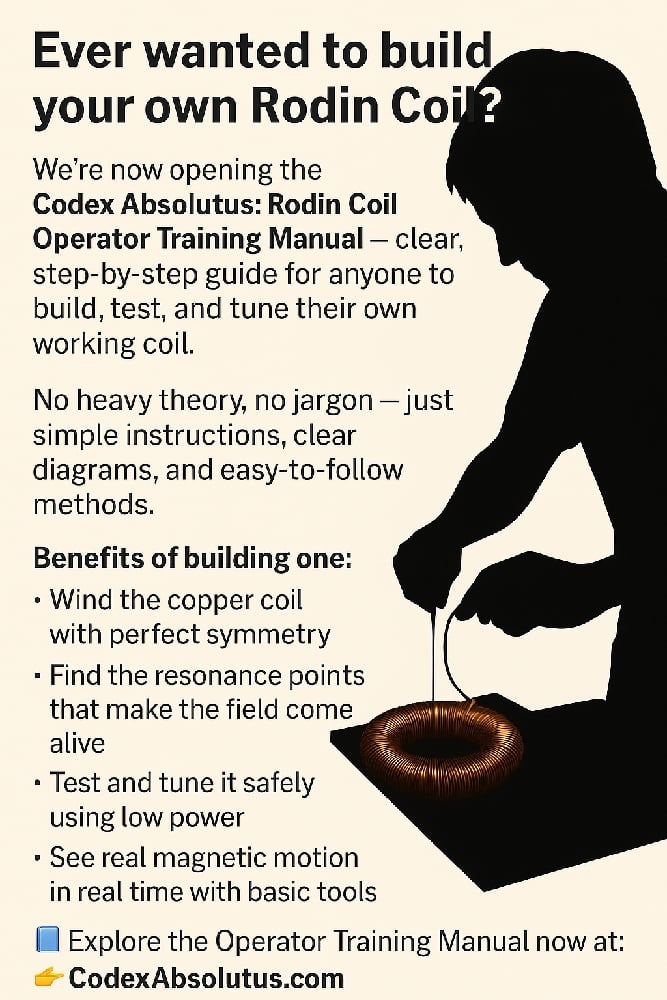 The Rodin Coil Operators Training Manual is a complete, practical guide designed for builders, experimenters, and researchers ready to construct, test, and master the Rodin Coil.