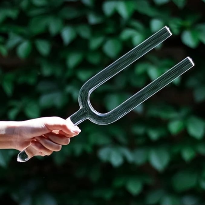 Using the fork is simple. Strike the prongs gently with a rubber activator or against the palm of your hand, then hold it near the ears, over the body, or around the space you want to clear or calm. The vibration gradually fades as the frequency disperses, leaving a noticeable shift in atmosphere and focus. Some practitioners also place the base of the fork lightly on areas of tension such as the shoulders, chest, or joints to allow the vibration to travel through the body.